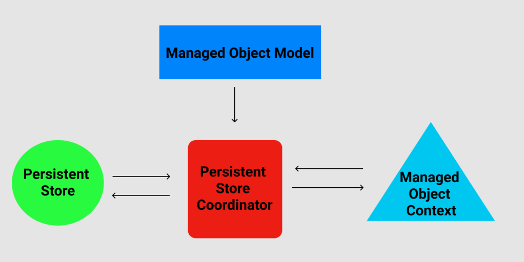1. We create an instance of the Persistent Store Coordinator and we give it a Managed Object Model. We tell it this is the data we have and how it’s all laid out.